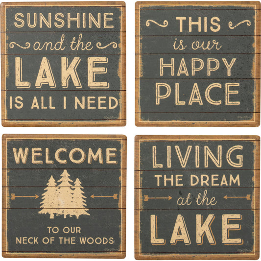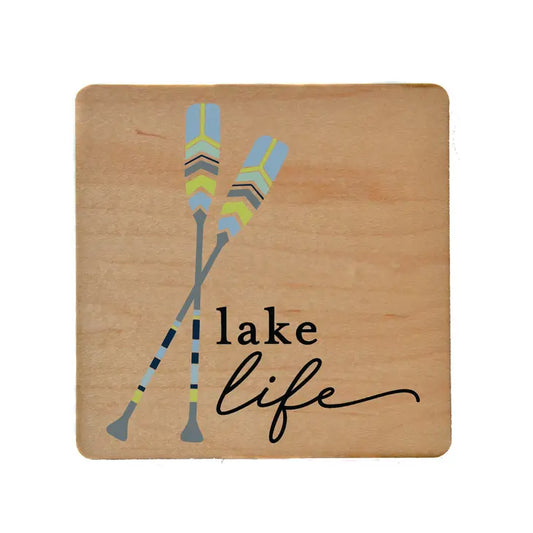 Lake Life With Paddles Wood Coaster - Lake Décor